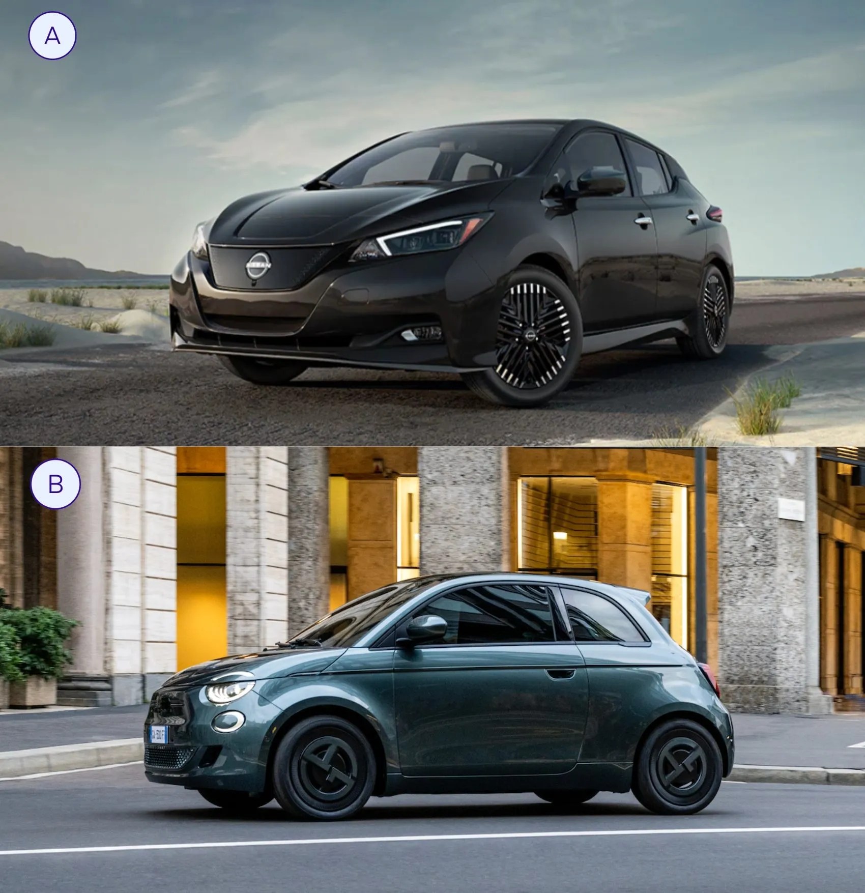 The 2025 Nissan Leaf starts at around $28,000 and gets between 149 and 215 miles of range, depending on the trim. Meanwhile, the Fiat 500e is a compact EV that starts at around $32,500 new and gets 141 miles of estimated range.